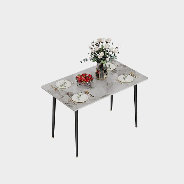 میز ناهار خوری آشپزخانه مستطیلی رویه میز سنگ مرمر سنگی مدرن متخلخل با پایه های فلزی مخروطیمبلمان